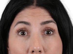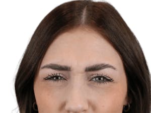 - Forehead furrows